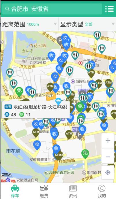 “這是針對停車位難找的困擾,專門開發(fā)的一款軟件。‘合肥停車’的安卓端上線早一步,后面我們又推了iso端,蘋果手機(jī)也可以下載。”合肥城泊公司相關(guān)負(fù)責(zé)人告訴記者,軟件主要顯示二環(huán)以內(nèi)近2萬個(gè)劃線車位信息,以及4000多個(gè)收費(fèi)臨時(shí)泊位的信息。免費(fèi)停車位用綠色圖標(biāo)做出標(biāo)記,而藍(lán)色標(biāo)記代表收費(fèi)停車位。